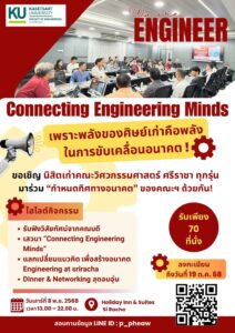 📢 ขอเชิญ นิสิตเก่าคณะวิศวกรรมศาสตร์ ศรีราชา ทุกรุ่นมาร่วม “กำหนดทิศทางอนาคต” ของคณะฯ ด้วยกัน!นี่คือโอกาสทองที่ศิษย์เก่าจะได้กลับมาร่วมแรง ร่วมใจใช้ประสบการณ์จริงจากภาคอุตสาหกรรมและชีวิตการทำงานเพื่อสร้าง พิมพ์เขียวแห่งอนาคตให้บ้านหลังที่สองของเรา 🏫✨ 📅 วันเสาร์ที่ 8 พฤศจิกายน 2568🕐 เวลา 13.00 – 22.00 น.📍 โรงแรม Holiday Inn & Suites Si Racha👥 รับจำนวนจำกัดเพียง 70 ท่านเท่านั้น (เฉพาะศิษย์เก่า)💸 ฟรี! ไม่มีค่าใช้จ่าย (วางเงินสำรองที่นั่ง 500 บาท รับคืนเต็มจำนวนหน้างาน) 🧭 ไฮไลต์กิจกรรม