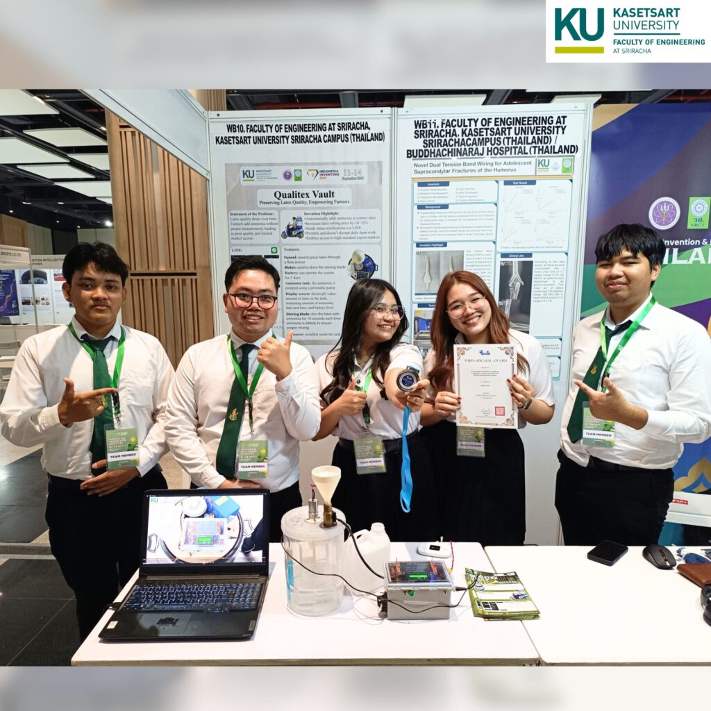 ขอแสดงความยินดีกับนิสิตจาก สาขาวิชาวิศวกรรมคอมพิวเตอร์และสารสนเทศศาสตร์ ภาควิชาวิศวกรรมคอมพิวเตอร์ คณะวิศวกรรมศาสตร์ ศรีราชา มหาวิทยาลัยเกษตรศาสตร์ วิทยาเขตศรีราชา วิศวกรรมคอมพิวเตอร์ เกษตรศาสตร์ ศรีราชา ที่ได้รับ รางวัล WIIPA Special Award จาก สมาคมทรัพย์สินทางปัญญานวัตกรรมโลก (WIIPA) และ เหรียญเงิน จากการแข่งขัน World Young Inventors Exhibition (WINTEX) ในงาน Indonesia Inventors Day 2025 (IID2025) ซึ่งจัดขึ้นระหว่างวันที่ 11–14 กันยายน 2568 ณ กรุงจาการ์ตา สาธารณรัฐอินโดนีเซีย