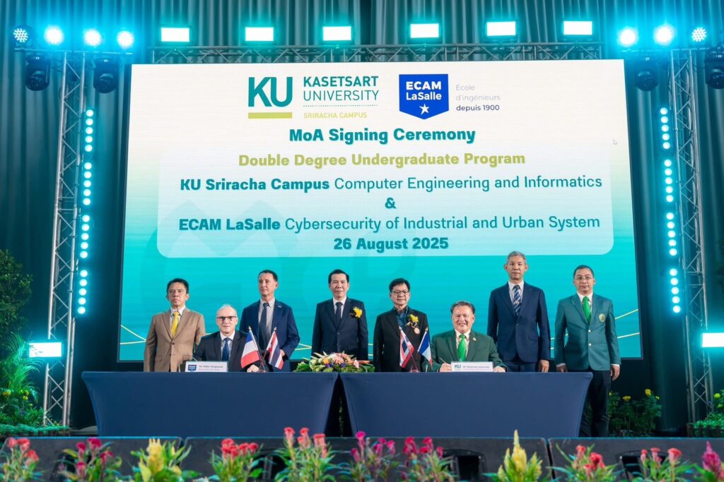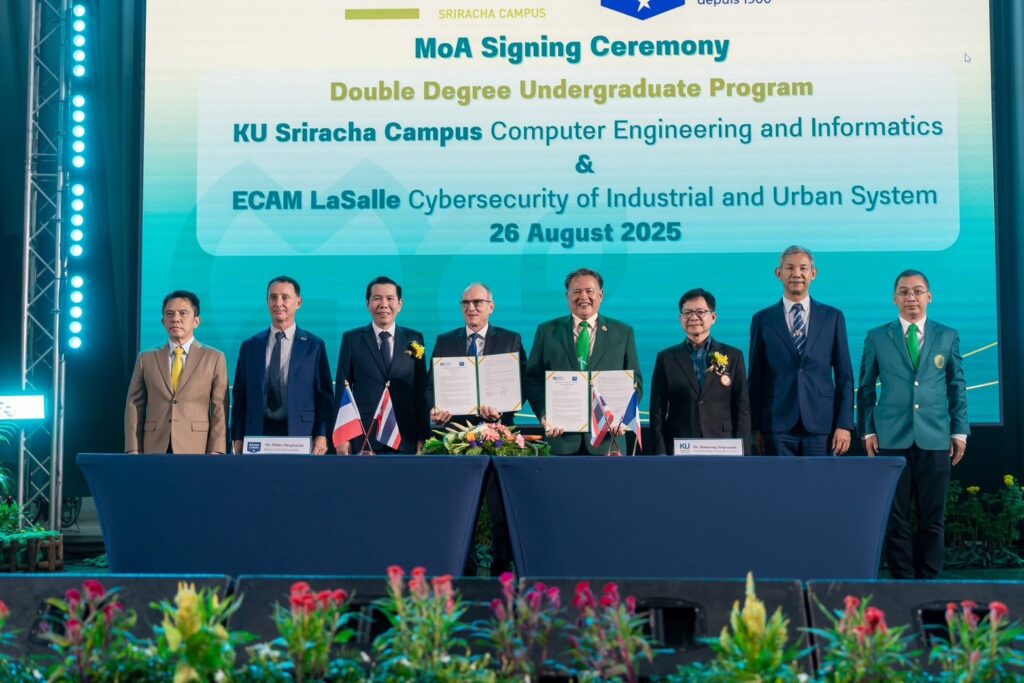 คณะวิศวกรรมศาสตร์ ศรีราชา ผนึกกำลัง ECAM LaSalle ลงนามบันทึกข้อตกลง MOA Undergraduate Double Degree Program KUSRC B.Eng. (Computer Engineering and Informatics) & ECAM LaSalle B.S. (Cybersecurity of Industrial and Urban System) ผลิตหลักสูตรปริญญาตรี 2 ใบ ด้าน Cybersecurity ภายใน 4 ปี แห่งแรกในประเทศไทย